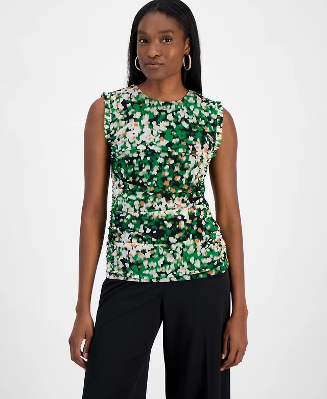 Bar Iii Women's Abstract Printed Mesh Sleeveless Blouse, Exclusively at Macy's
