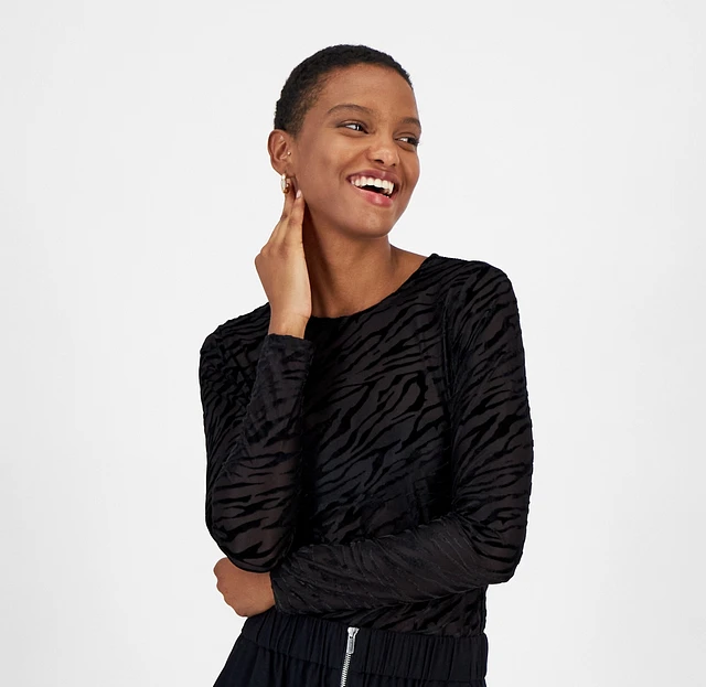 Bar Iii Women's Burnout Velvet Long-Sleeve Crewneck Top, Created for Macy's