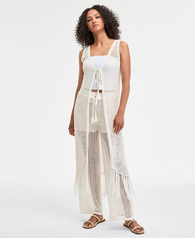 Bar Iii Women's Crochet Fringe Sleeveless Cardigan, Exclusively at Macy's