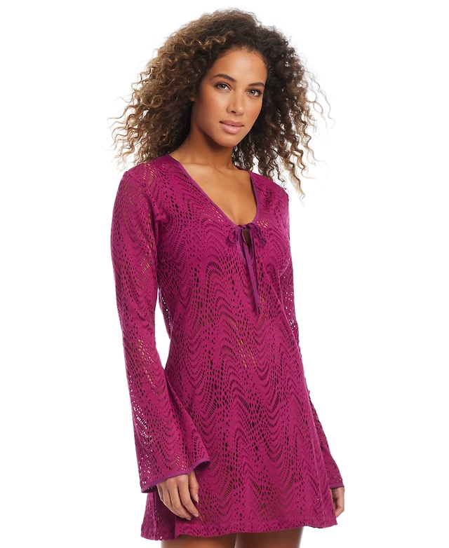 Bar Iii Women's Crochet Plunge-Neck Cover-Up Dress, Created for Macy's