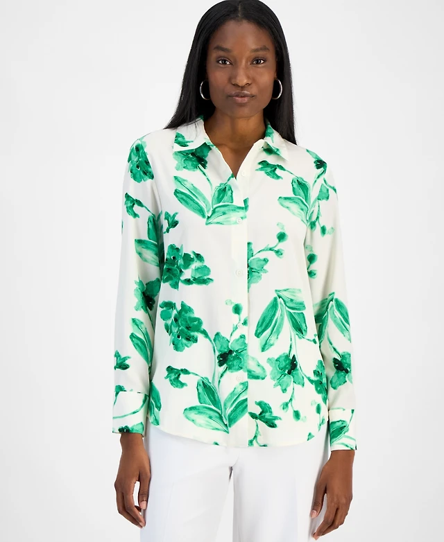 Bar Iii Women's Printed Button-Front Blouse, Exclusively at Macy's