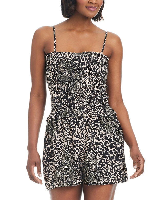 Bar Iii Women's Printed Smocked-Top Cover-Up Romper, Created for Macy's