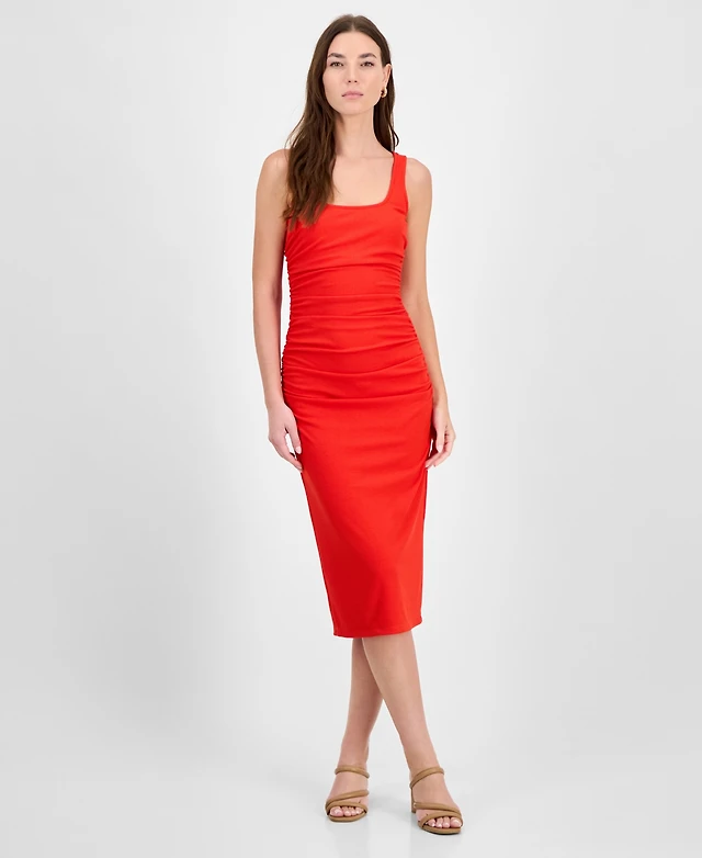 Bar Iii Women's Ribbed-Knit Square-Neck Ruched Dress, Exclusively at Macy's