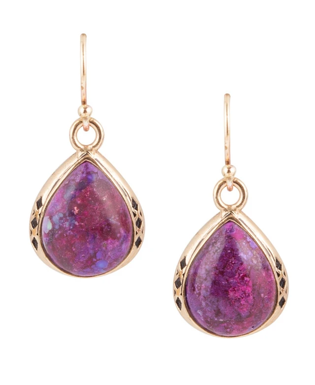 Barse Women's Havana Bronze and Purple Turquoise Drop Earrings