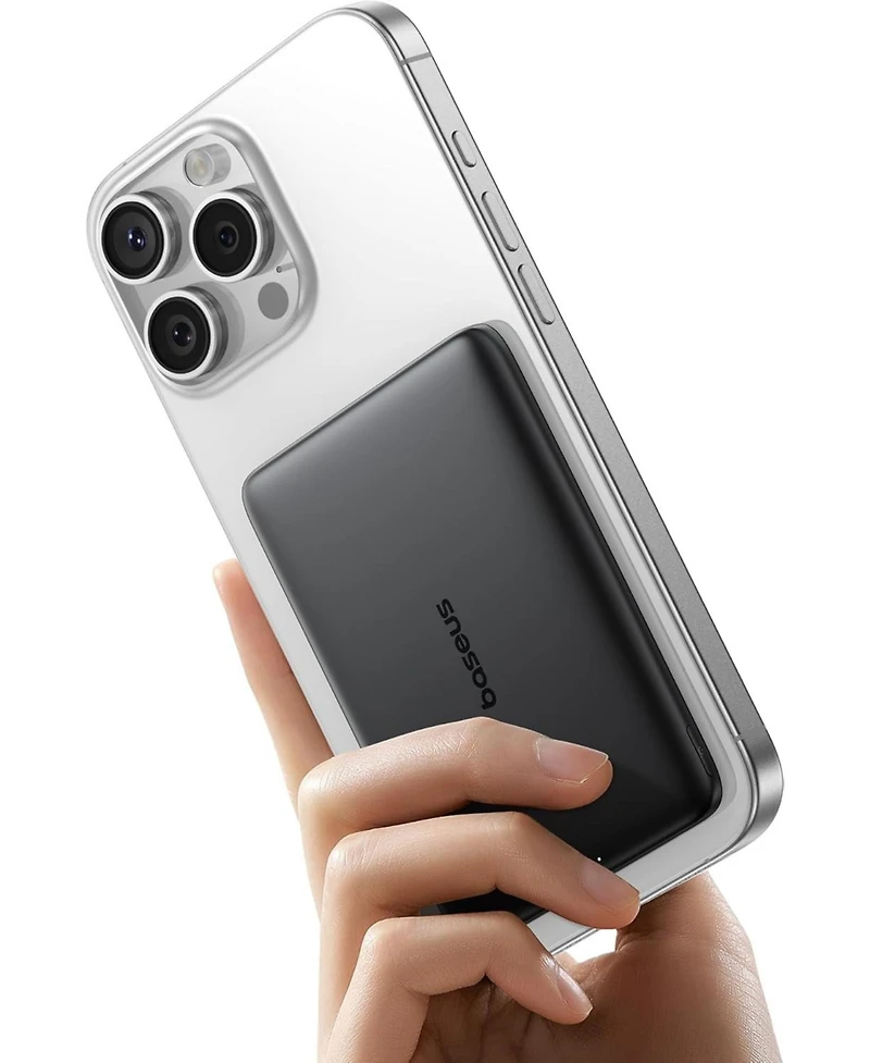 Stay powered in style with the Baseus 5000mAh MagSafe Battery Pack-ultra-slim (0.3in) and ultra-light (3.8oz), it fits in your pocket like a card. Strong 11N magnets snap securely to your iPhone for hands-free wireless charging, while the 20W Usb-c port offers fast charging up to 55% in 30 mins. Built with Tesla-grade batteries and Ntc chips monitoring temperature 18,000x/hour, it ensures safe, efficient power with advanced graphene cooling. The aluminum shell resists scratches and heat, while the nano-coated silicone provides a soft, waterproof, fingerprint-resistant grip. With 9 safety protections and global certifications (Fcc, Ul, Tuv), it's trusted by 300M+ users worldwide. Charge smart, charge safe-with Baseus.