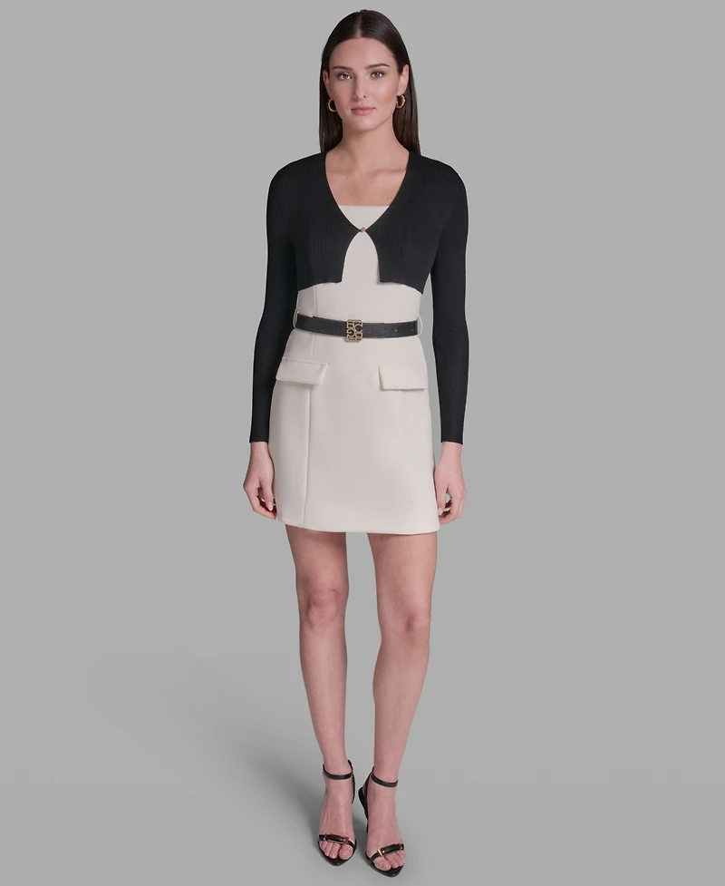 Achieve effortless elegance in this cropped sweater from Bcbg, designed with an open front and gold-tone button detailing. Its V-neckline and relaxed silhouette create versatile appeal for numerous occasions.