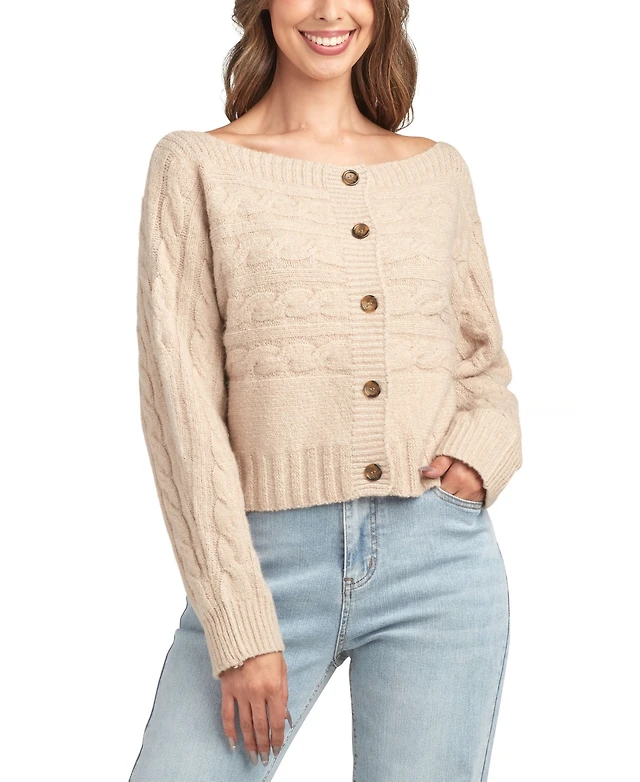 Bcx Juniors' Boat Neck Long Sleeve Cardigan Sweater