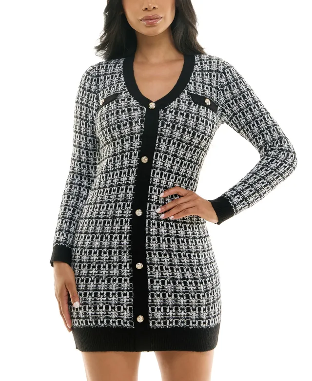 Bcx Juniors' Chunky V-Neck Button-Front Knit Sweater Dress