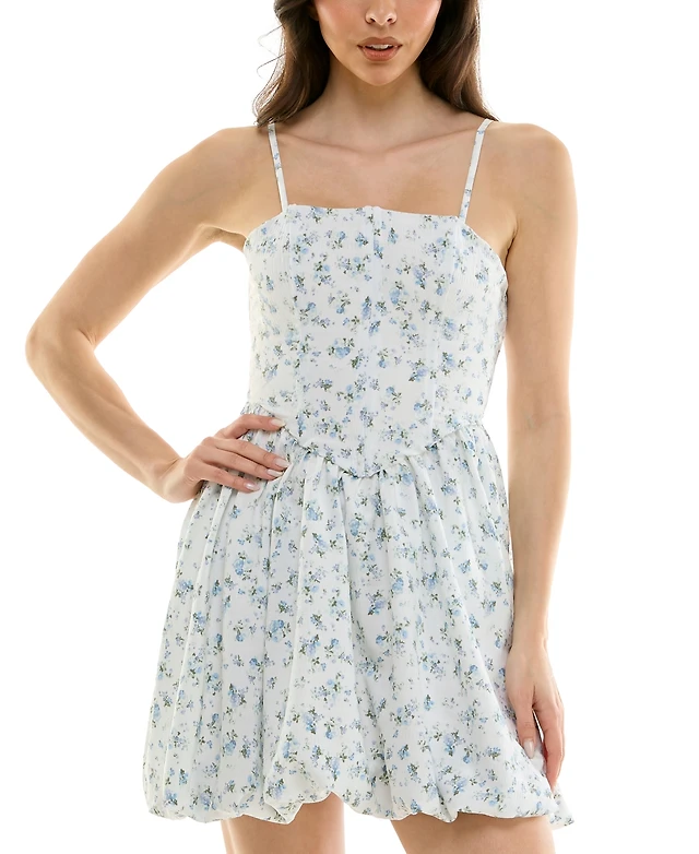 Bcx Juniors' Floral Print Bubble Hem Sleeveless Fit & Flare Dress