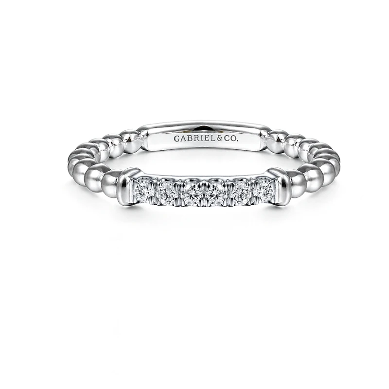 Beaded Diamond Bar White Gold Ring