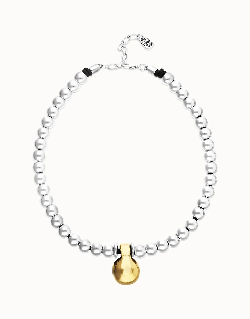 This necklace captures movement through repetition: a succession of rounded beads that move like a steady rhythm, creating a gentle but unstoppable energy around your neck.