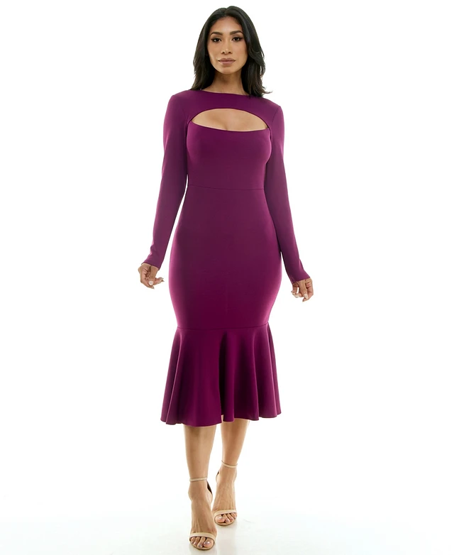 Bebe Women's Cap Sleeve Bandage Flounce Dress