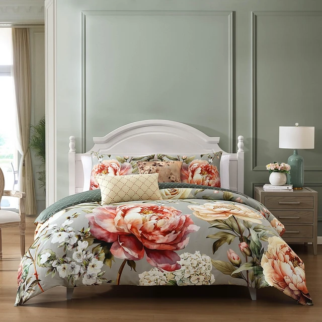 Bebejan Elegant Blossoms Bedding 100 Cotton 5 Piece King Size Reversible Comforter Set