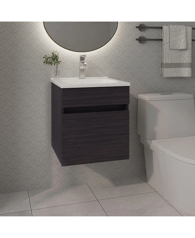 Belle Bathroom Floating Vanity with Sink, 1 Door, Wengue