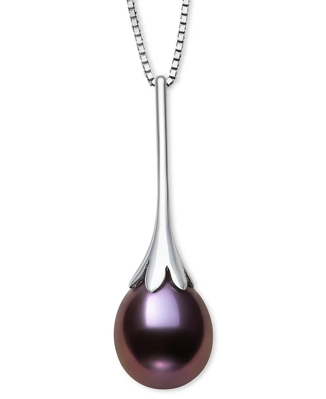 Belle de Mer Dyed Black Peacock Cultured Freshwater Pearl (7-8mm) Pendant 18" Necklace in Sterling Silver