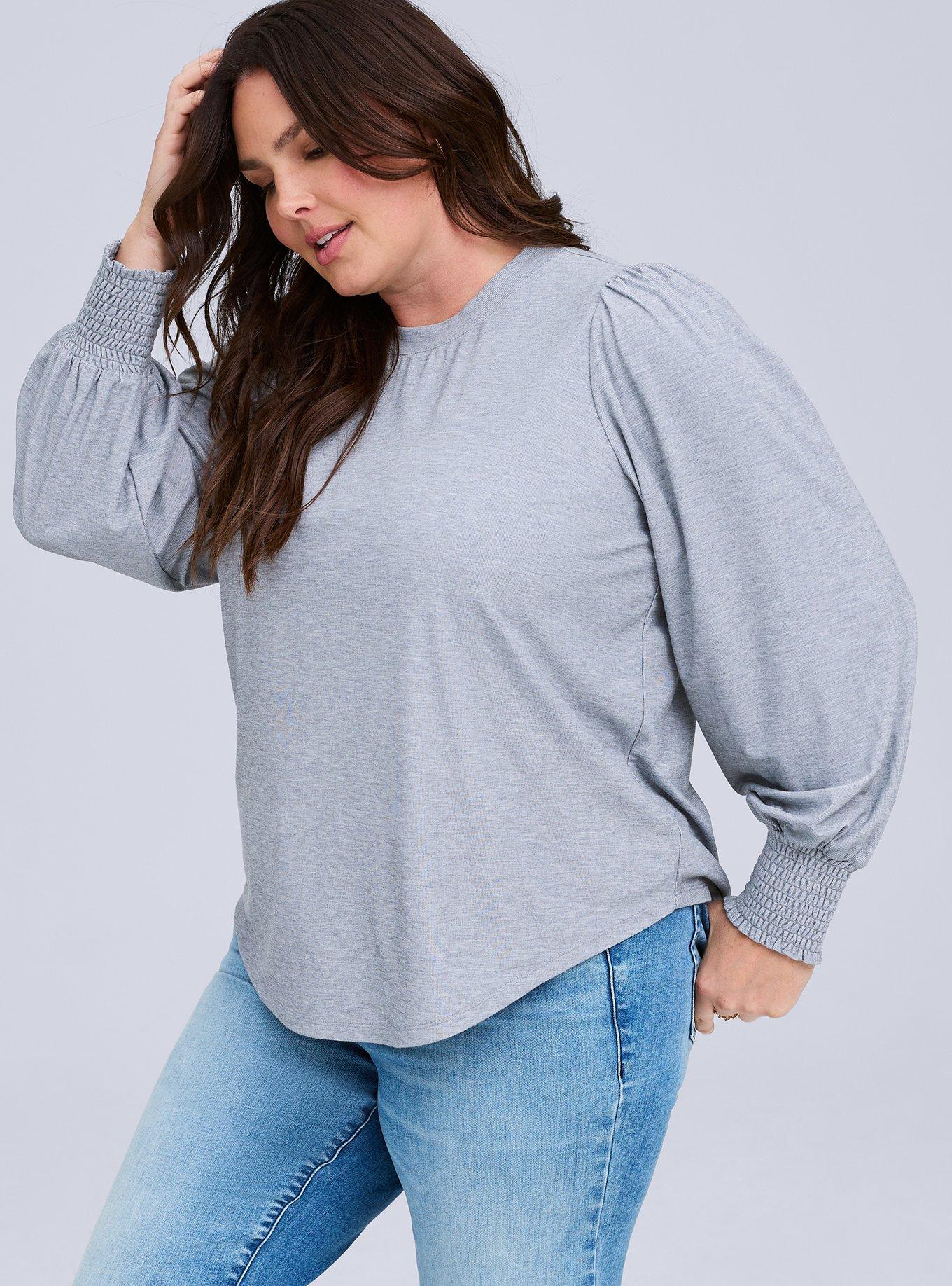 FIT Measures 29'' from shoulder (size 2). MATERIALS + CARE Belle rib knit fabric. 62% rayon, 38% polyester. Machine wash cold. Tumble dry low. Imported. DETAILS Crew neckline. Long blouson sleeves with smocked cuffs. BELLE ISLE Pretty in the park. Classic by the coast. Fresh, feminine and always effortless. Belle Isle makes getting dressed a celebration.