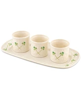 Perfect for dips with appetizers or sauces on the side with a meal, this tapas set from Belleek Pottery is in stylish porcelain embossed with a basketweave motif trimmed in hand-painted shamrocks.