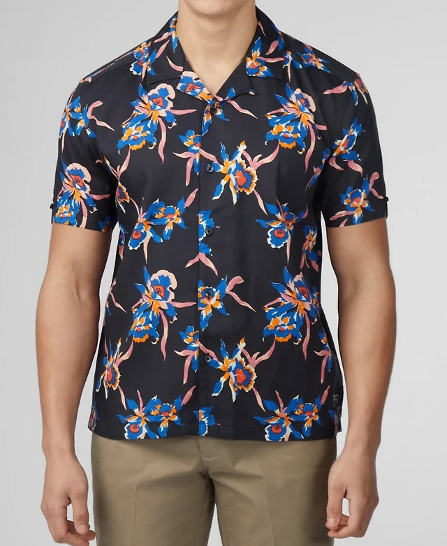 Ben Sherman Men's Botanical Print Short Sleeve Shirt
