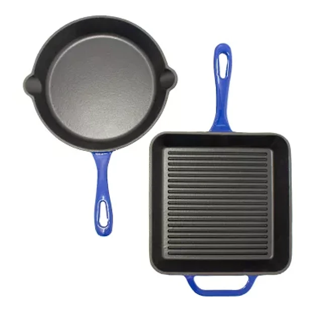 BergHOFF Neo 2pc Cast Iron 10" Fry Pan & 11" Grill Pan Cookware Set