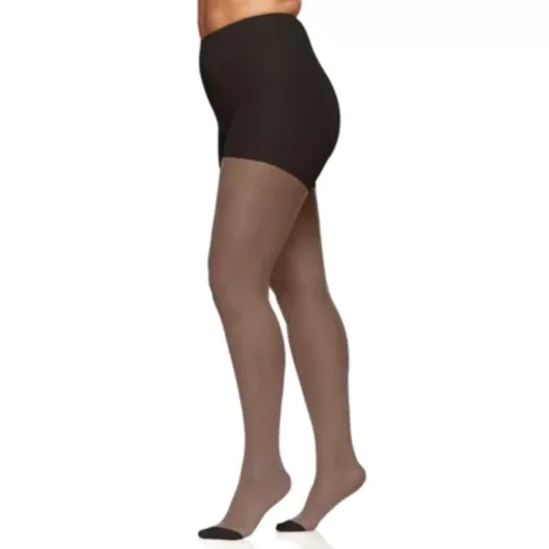Enjoy the perfect fit of this silky sheer plus size pantyhose that offers a control top to comfortably smooth your tummy and a reinforced toe so there are "no holes at the toes".