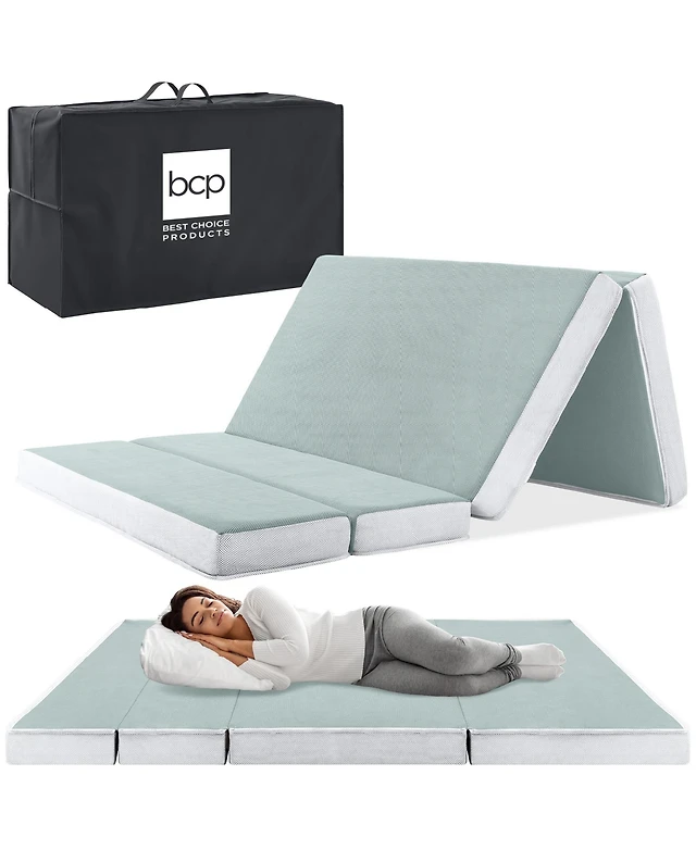 Best Choice Products 4in Thick Folding Portable Seafoam Mattress Topper w/ Carry Case