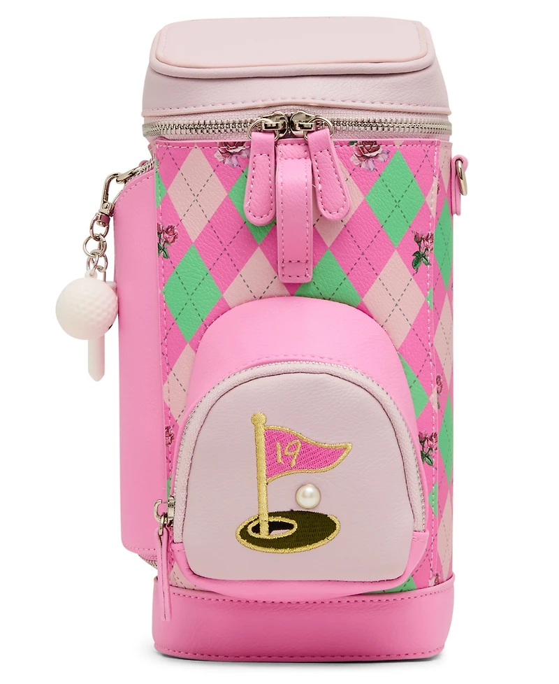 This playful Betsey Johnson Par-tee crossbody bag brings sporty charm to everyday style. Designed with golf-inspired details and a whimsical front motif, it's finished with contrast trim and an adjustable strap for easy, hands-free wear. A fun statement accessory that adds a touch of personality both on and off the course.