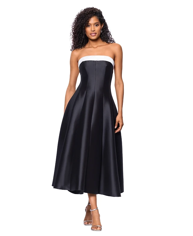 Betsy & Adam Petite Strapless Midi Ballgown