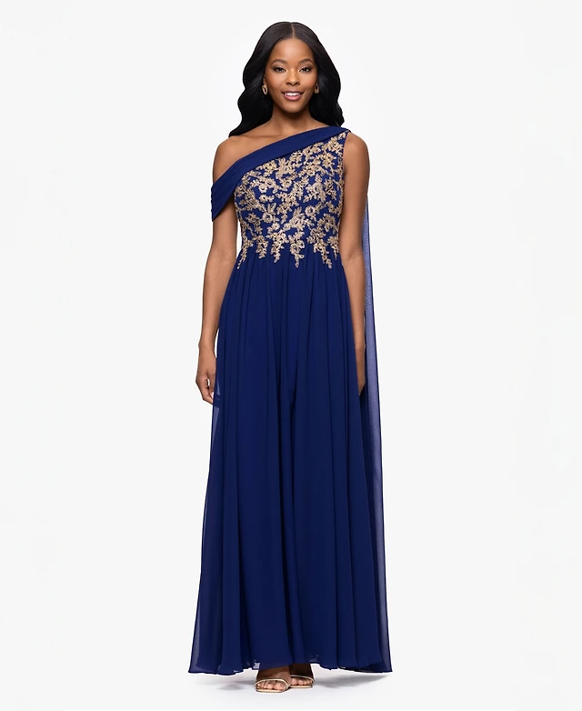 Betsy & Adam Women's Bow-Trim Soutache One-Shoulder Dress