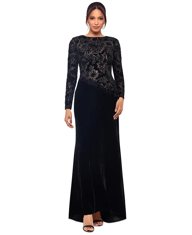 Betsy & Adam Women's Embroidered Velvet Evening Gown