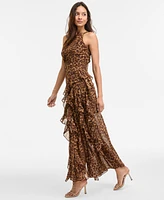 Betsy & Adam Women's Printed Sheath Chiffon Halter Dress