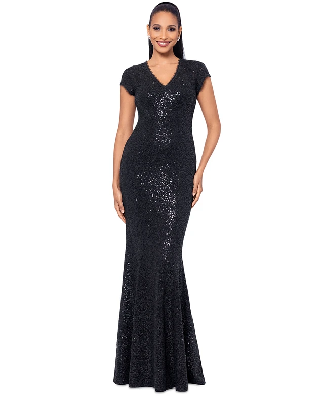 Betsy & Adam Women's Sequined Lace Cap-Sleeve Gown