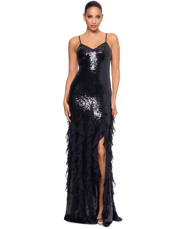 Betsy & Adam Women's Sequined Ruffled Gown