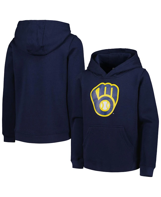 Big Boys and Girls Navy Milwaukee Brewers Team Primary Logo Pullover Hoodie