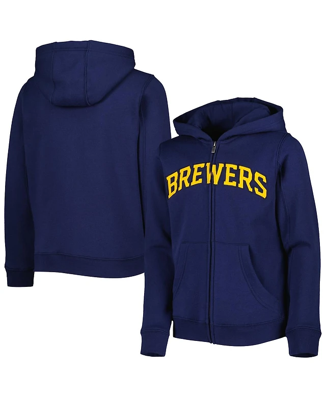 Big Boys and Girls Navy Milwaukee Brewers Wordmark Full-Zip Fleece Hoodie