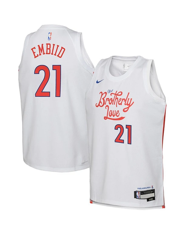 Big Boys and Girls Nike Joel Embiid White Philadelphia 76ers 2022/23 Swingman Jersey - City Edition