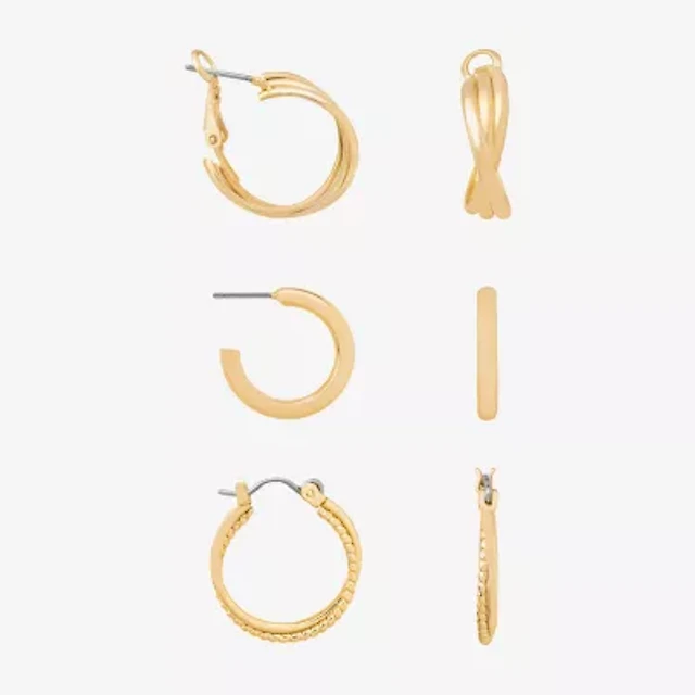 Bijoux Bar Delicates Gold Tone Womens Stainless Steel 3 Pair Earring Set