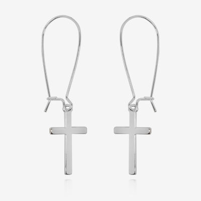 Bijoux Bar Delicates Silver Tone Womens Cross Drop Earrings