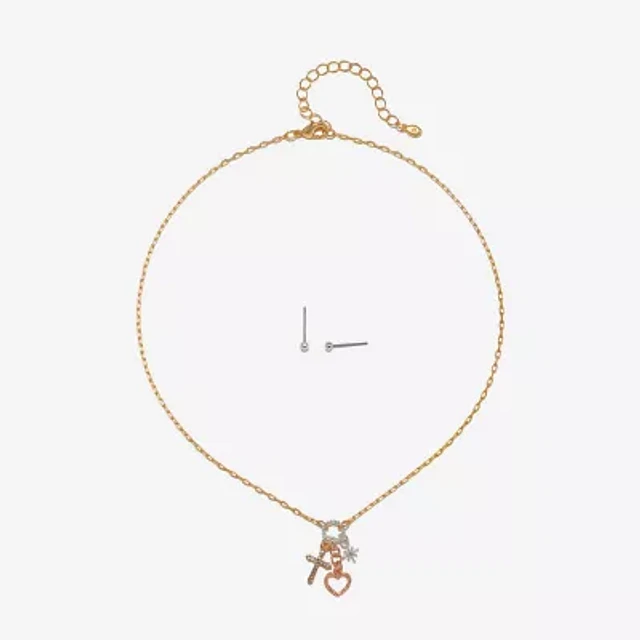 Bijoux Bar Delicates Tri Tone Womens Glass Cross Moon Star 2-pc. Jewelry Set