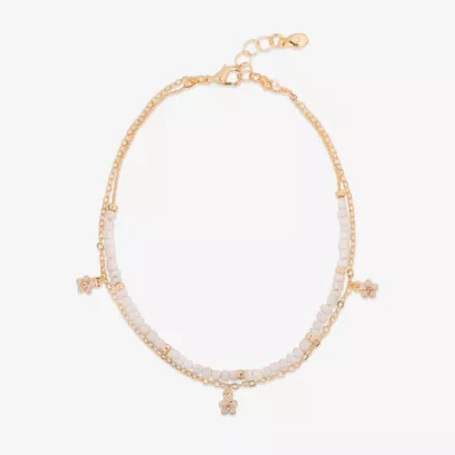 Bijoux Bar Delicates Womens 9 Inch Solid Link Flower Ankle Bracelet