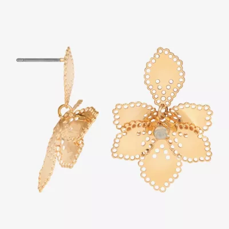 Bijoux Bar Delicates Womens White Opal Flower Drop Earrings