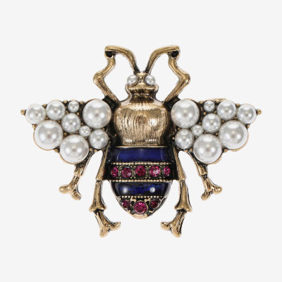 Bijoux Bar Gold Tone Bee Multi Color Glass Brooch