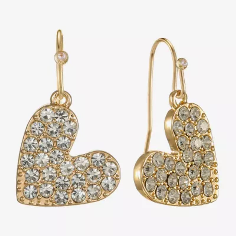 Bijoux Bar Gold Tone Womens Glass Heart Drop Earrings