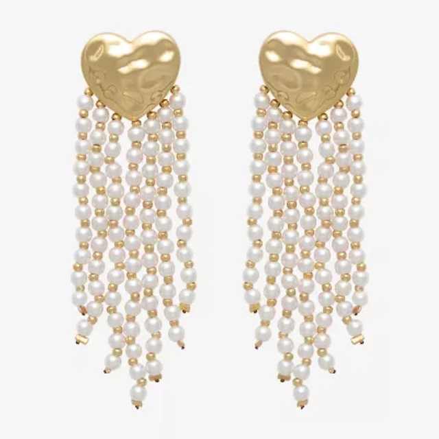 Bijoux Bar Gold Tone Womens White Simulated Pearl Heart Drop Earrings