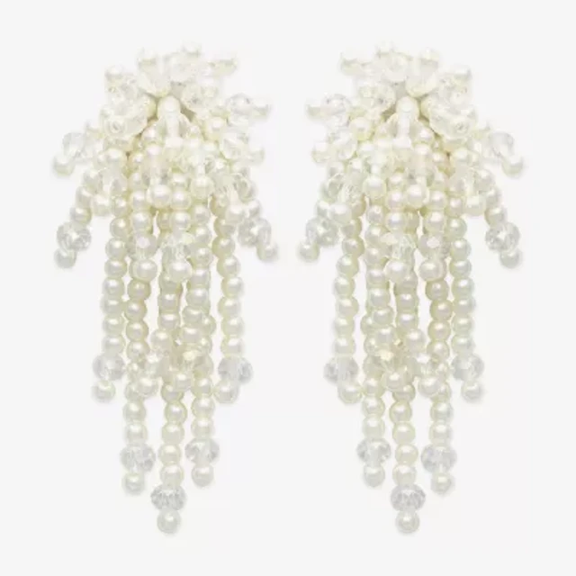 Worthington Linear Womens Simulated Pearl Drop Earrings