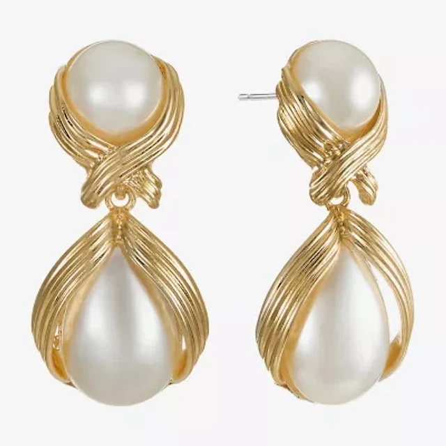 Bijoux Bar Gold Tone Womens Simulated Pearl Drop Earrings