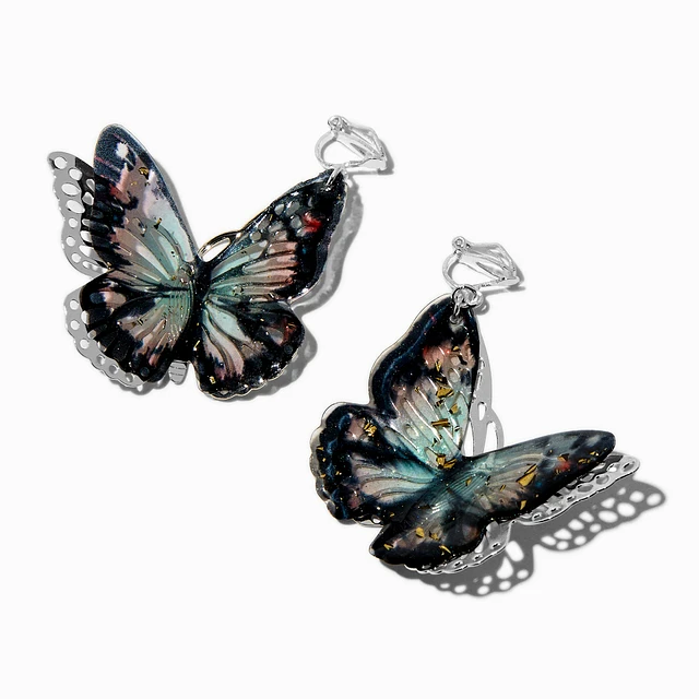 Glitter Butterfly 1'' Clip-On Drop Earrings