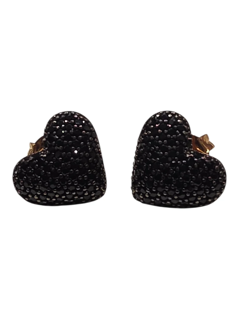 Elegant black heart studs crafted from 18K Brazilian goldfilled for lasting durability and luxury appeal. Hypoallergenic design makes them ideal for sensitive skin, ensuring comfort throughout the day. The timeless heart silhouette adds a touch of sophistication to any look—perfect for everyday wear or special occasions. Lightweight and versatile, these studs complement both casual and formal styles effortlessly.