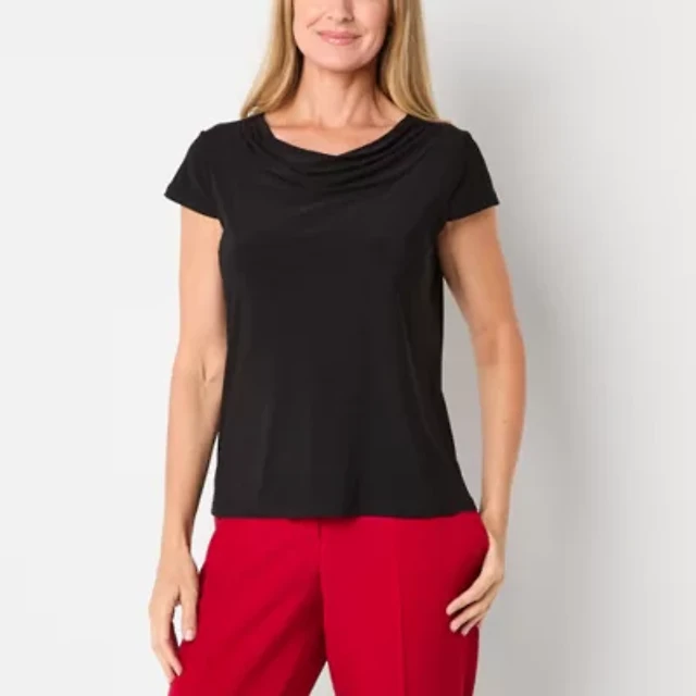 Black Label by Evan-Picone Womens Cowl Neck Short Sleeve Blouse