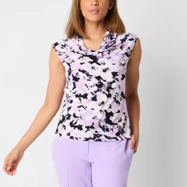 Black Label by Evan-Picone Floral Womens Cowl Neck Sleeveless Blouse