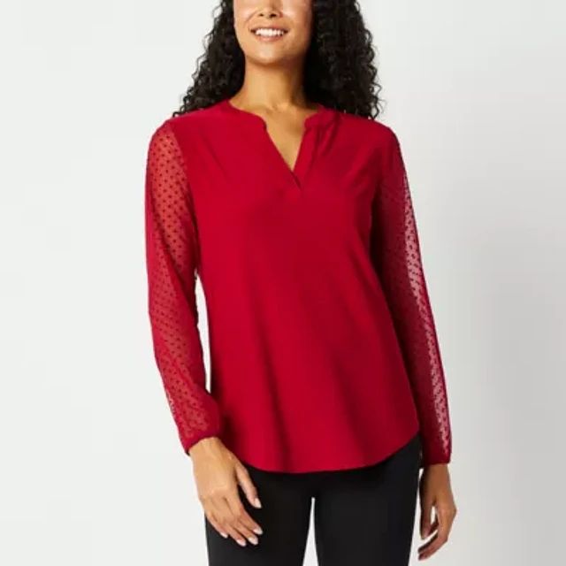 Black Label by Evan-Picone Womens Split Crew Neck Long Sleeve Blouse